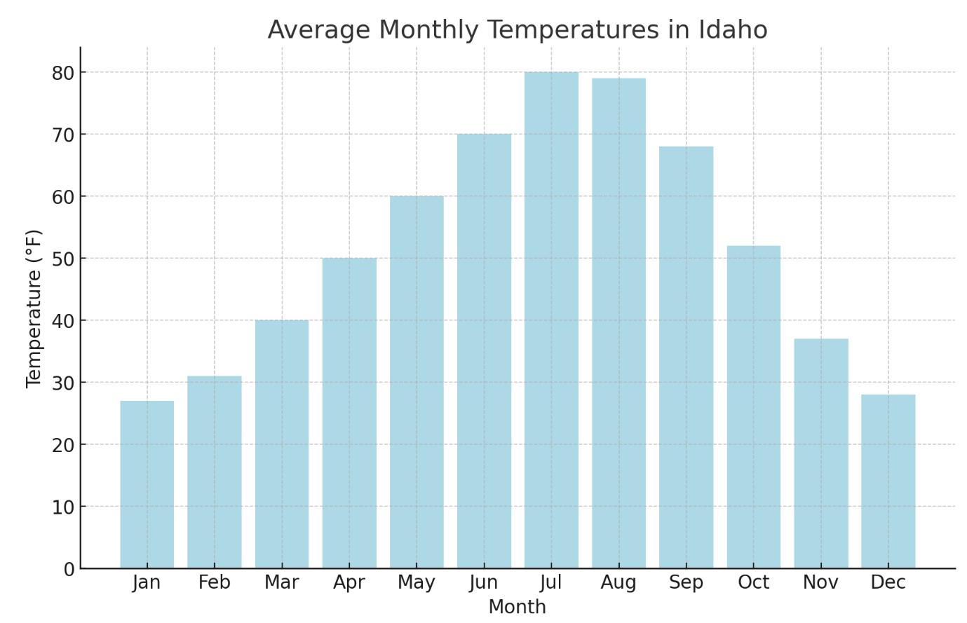 آب و هوا: ژانویه سردترین ماه آیداهو است و دمای آن بسته به منطقه از 10 درجه فارنهایت تا 30 درجه فارنهایت (12- تا -1 درجه سانتیگراد) است. مناطق کوهستانی، از جمله رشتههای Sawtooth و Bitterroot، بارش برف سنگینی را تجربه میکنند و شرایط مناسبی را برای ورزشهای زمستانی ایجاد میکنند. ارتفاعات پایین تر مانند بویز و دشت رودخانه مار نیز هوای سرد را تجربه می کنند و گاهی اوقات برف می آید.